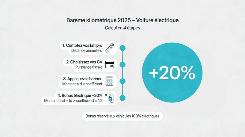 Frais Kilométrique Voiture Électrique 2025 : Barème, Calcul & Majoration 20%